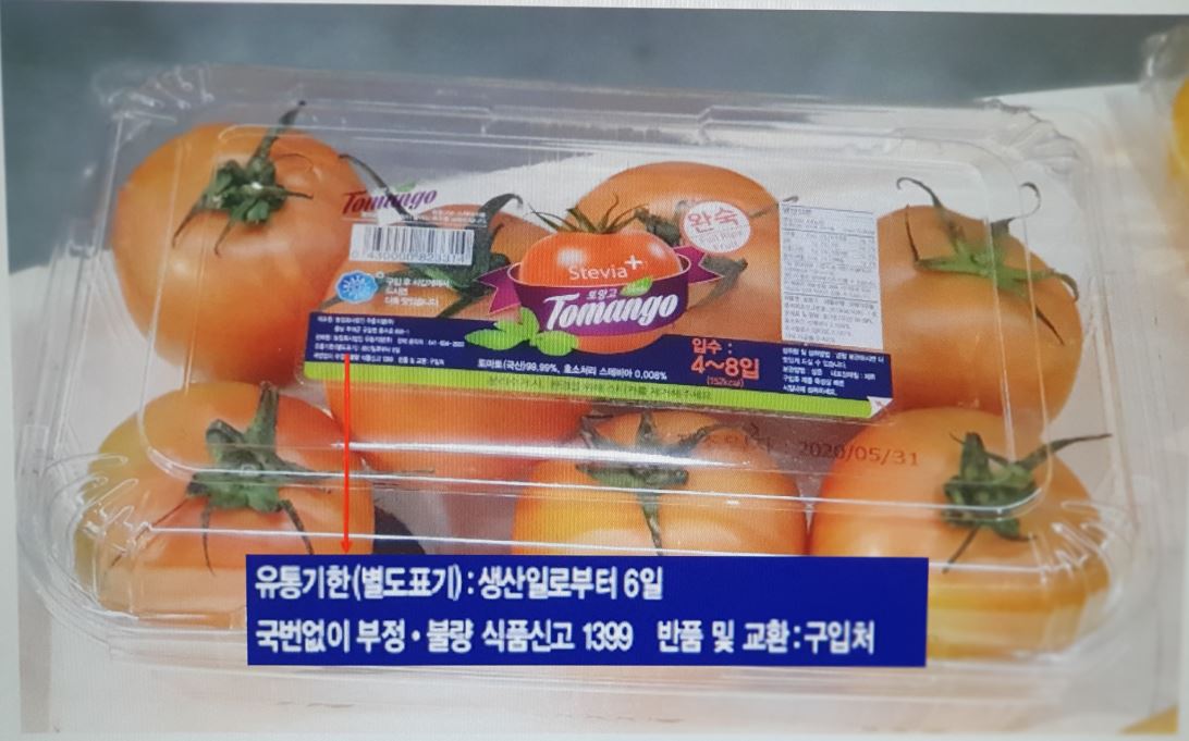마트에서 판매중인 토망고 라벨을 보면 제조일자가 2020/05/31이라고 표기되어 있고 유통기한 역시 생산일(제조일)로 부터 6일이라고 되어 있습니다. 이렇듯 스테비아 토마토는 살짝 가공된 식품이라고 보면 됩니다. 하지만 이 모든 과정이 식품의약품안전처의 가이드 기준을 엄격하게 준수했기에 안전합니다. 신선하고 맛있는 토망고를 구입하기 위해서는 신선도뿐만 아니라 반드시 유통기한을 확인하고 구입하셔야 합니다.
