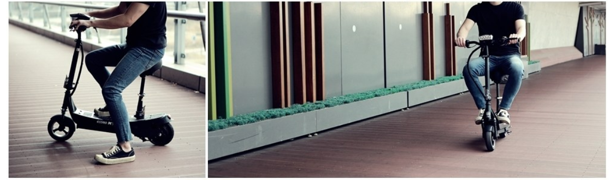 에코로 M5 전동스쿠터는 서서 탈 수도, 안장을 장착하여 앉아서 탈 수도 있는 다재다능함을 자랑합니다. 이 유연성은 사용자의 다양한 요구와 상황에 따라 편리하게 대응할 수 있게 해주며, 하나의 제품으로 두 가지의 다른 경험을 제공합니다.