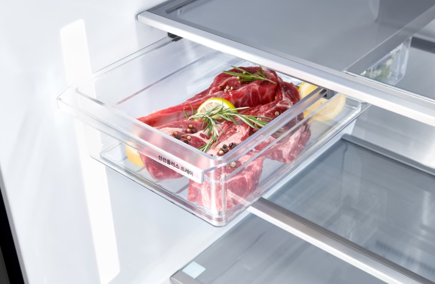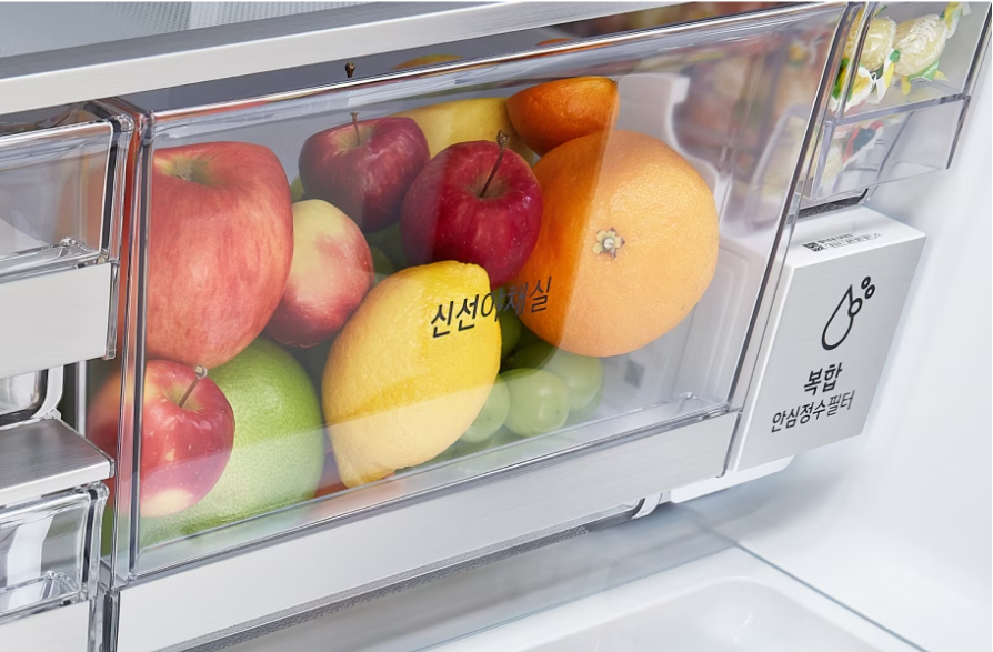 신선야채실 기능이 있는 LG 디오스 오브제컬렉션 냉장고는 정말 생각이 깊어요. 과일과 야채 같이 신선함이 생명인 식품들을 다른 거랑 섞이지 않게 따로 보관할 수 있게 해주거든요. 이렇게 하면, 맛과 영양을 오랫동안 지킬 수 있어요.
