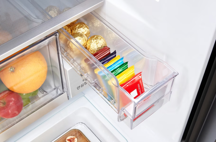 LG 디오스 오브제컬렉션 냉장고에 있는 미니스낵코너는 달콤한 간식을 위한 완벽한 장소에요. 크기가 작고 녹기 쉬운 초콜릿, 사탕, 치즈 같은 간식들을 모아놓기에 딱 좋죠. 이 작은 공간 덕분에 간식들을 더욱 신선하게 유지할 수 있어서, 언제든지 즐길 수 있어요.