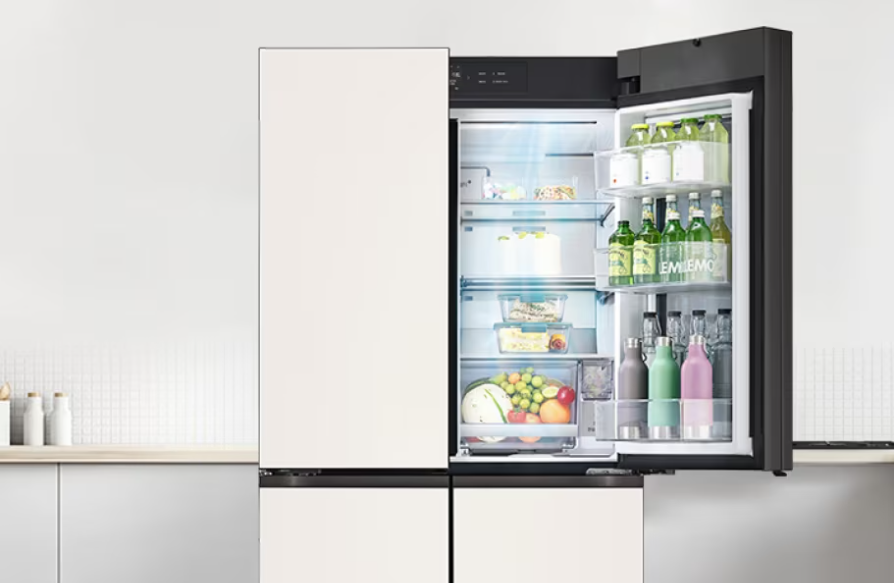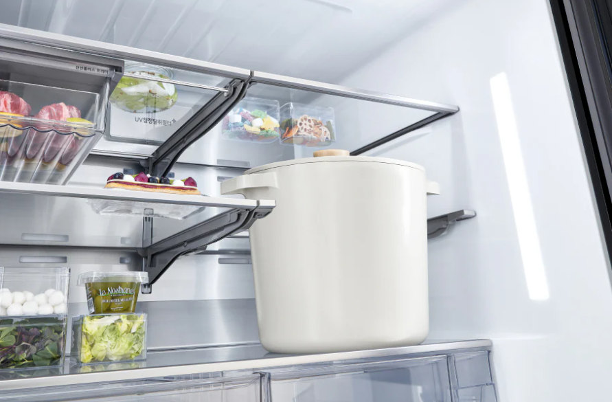 LG 디오스 오브제컬렉션 냉장고의 접이선반 기능이 정말 편리해요. 큰 냄비나 우유같이 보통 냉장고에 넣기 어려웠던 것들도 이제는 걱정 없이 보관할 수 있게 되었죠. 선반을 접어서 공간을 조절할 수 있으니, 크기에 상관없이 다양한 식품을 효율적으로 정리할 수 있어요.