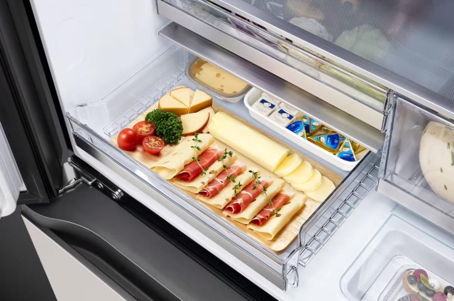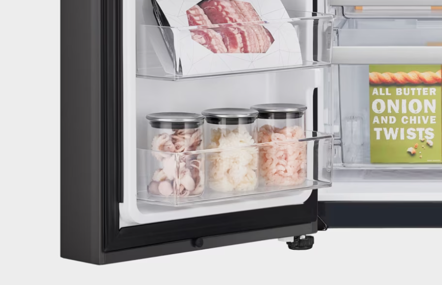 도어쿨링+로 이제 냉장고 문 쪽에 있는 간식들도 싱싱 바짝! 냉기가 쏘옥~ 문까지 닿으니까, 문에 둔 음식들도 신선함이 쭉~ 유지된답니다. 문을 자주 열어도 걱정 뚝! 이제 문 쪽에 뭐 두어도 마음 편히 신선하게 챙겨 먹을 수 있어요.