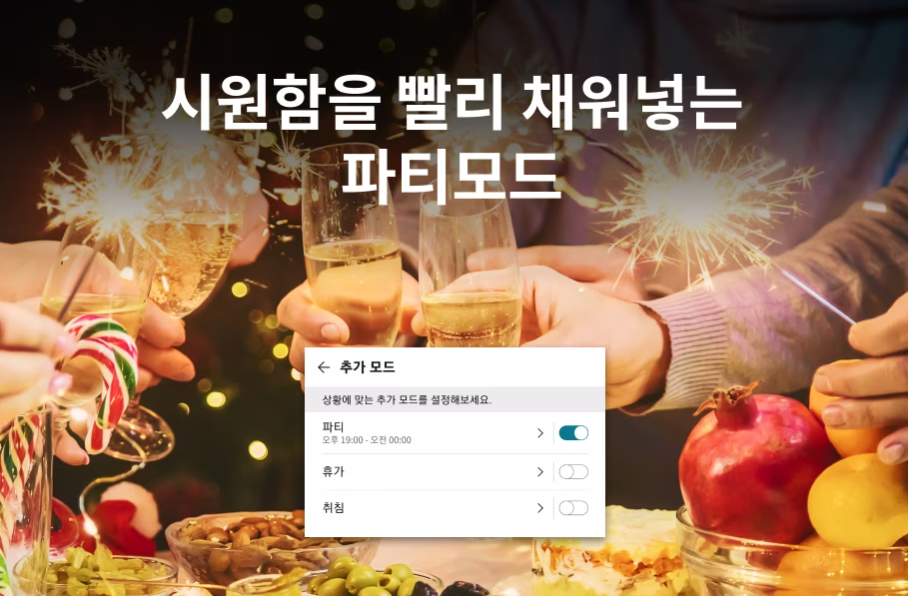 정해진 시간 동안만 특별 관리해주니까, 파티가 끝날 때쯤이면 냉장고도 원래대로 돌아와 에너지 절약도 신경 써주는 센스! 이제 파티에서 음식 걱정은 냉장고에 맡기고, 신나게 놀기만 하면 되겠죠?