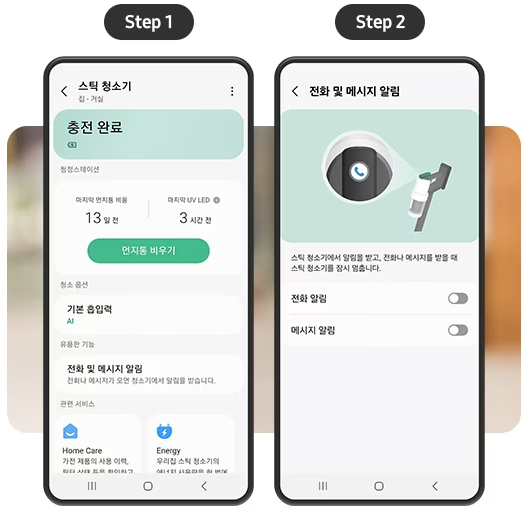 이 기능 덕분에 청소 중에도 소중한 사람들과의 연락을 놓치지 않게 되었어요. 더 이상 중요한 전화나 메시지를 놓치는 일 없이, 청소와 소통을 동시에 할 수 있게 되었죠. 정말 편리하고 스마트한 기능이라고 할 수 있어요!
