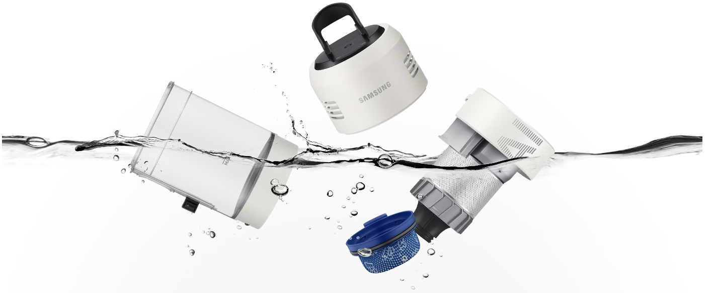 그리고 여기서 끝이 아니에요. 먼지통뿐만 아니라 싸이클론, 모터 필터, 고성능 필터까지 모두 간단히 분리하여 물세척이 가능합니다. 이렇게 모든 부품을 물로 씻을 수 있으니, 청소기 내부를 항상 깔끔하고 위생적으로 유지할 수 있어요.