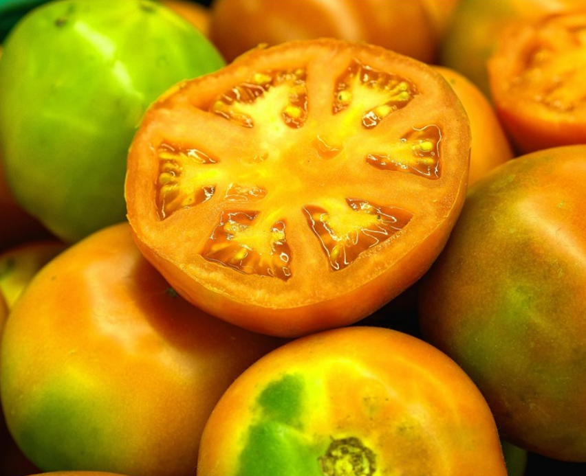 빨간색과 녹색이 적절히 섞였을 때 당도가 좋고 짭짤한 맛과의 조화가 가장 잘 어울리는 맛을 내줍니다. 이제 대저토마토를 반으로 잘라 속을 살펴보겠습니다. 대저 토마토 안 속의 특징은 과육이 꽉 차 있습니다. 대저 토마토를 잘라 시식해보면 짭짜름한 맛이 나면서 당도가 느껴지며 조화롭게 하는 맛이 대저토마토입니다.